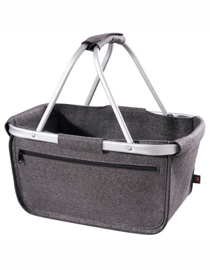 - Besondere Merkmale: Formschöner Filzkorb mit Alurahmen und Reißverschluss-Vortasche, faltbar