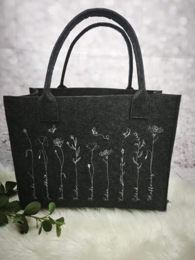 Diese einzigartige Tasche präsentiert eine zauberhafte bestickte Blumenwiese, die jedem Outfit einen fröhlichen Akzent verleiht. Der hochwertige Filz sorgt nicht nur für Langlebigkeit, sondern auch für ein angenehm weiches Tragegefühl. Ob beim Stadtbummel oder im Alltag – diese Tasche ist vielseitig einsetzbar und bringt ein Stück Natur in dein Leben. Hol dir ein Unikat, das zugleich praktisch und ein echter Hingucker ist!