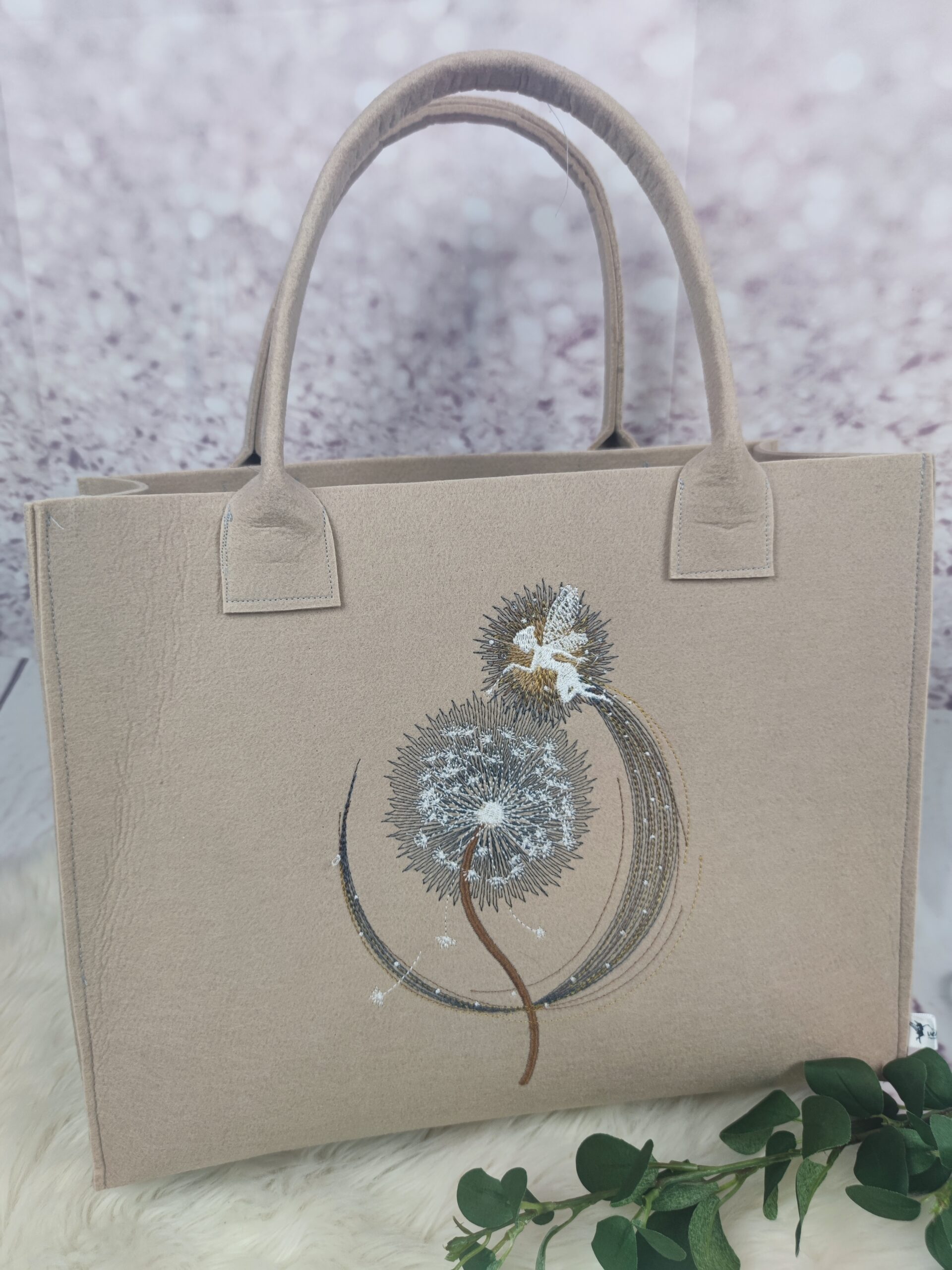 Filztasche handmade bestickt – Fee mit Pusteblume