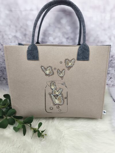 Filztasche handmade bestickt – Schmetterlinge