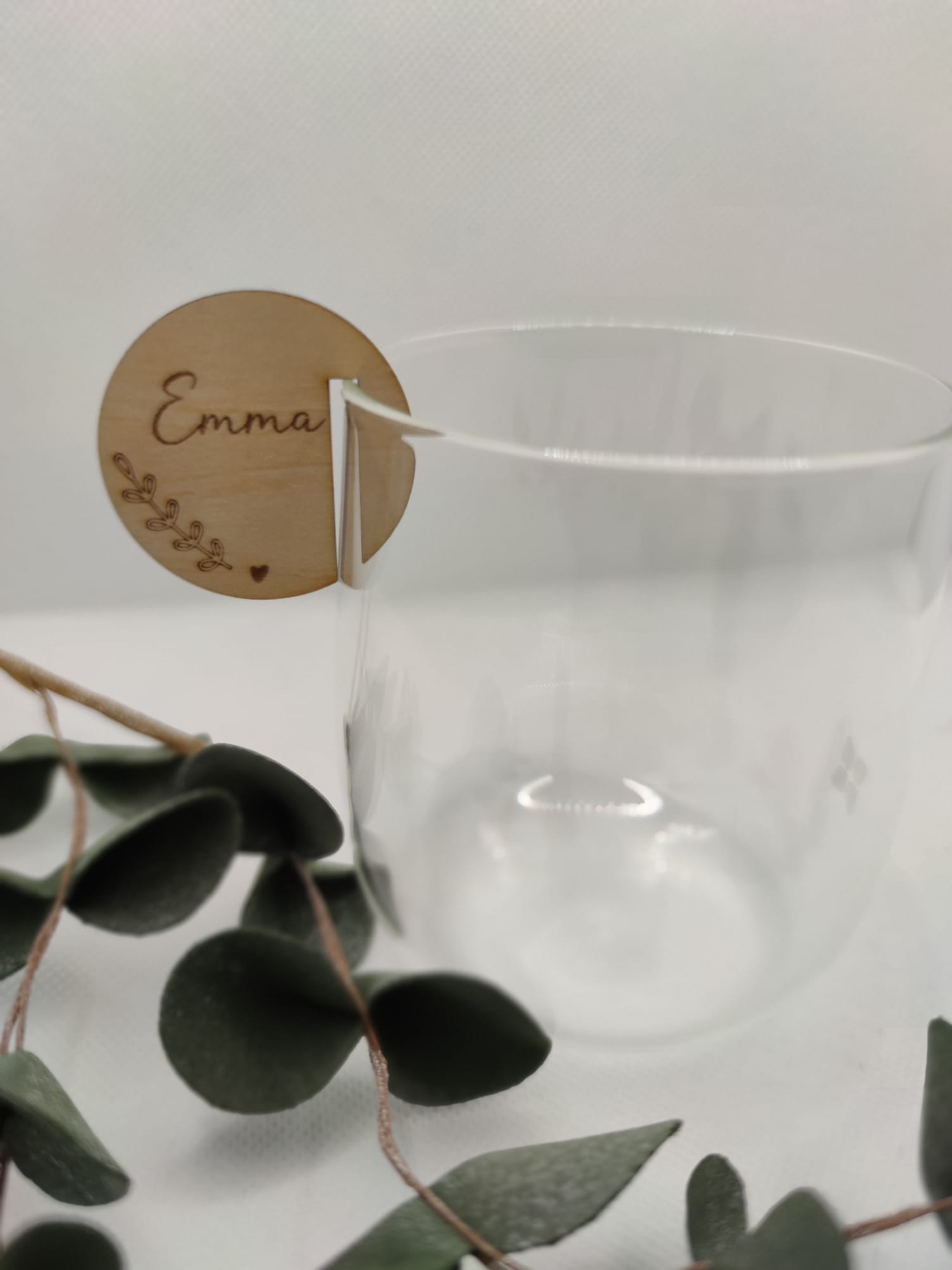 Holzstecker für Glas rund graviert