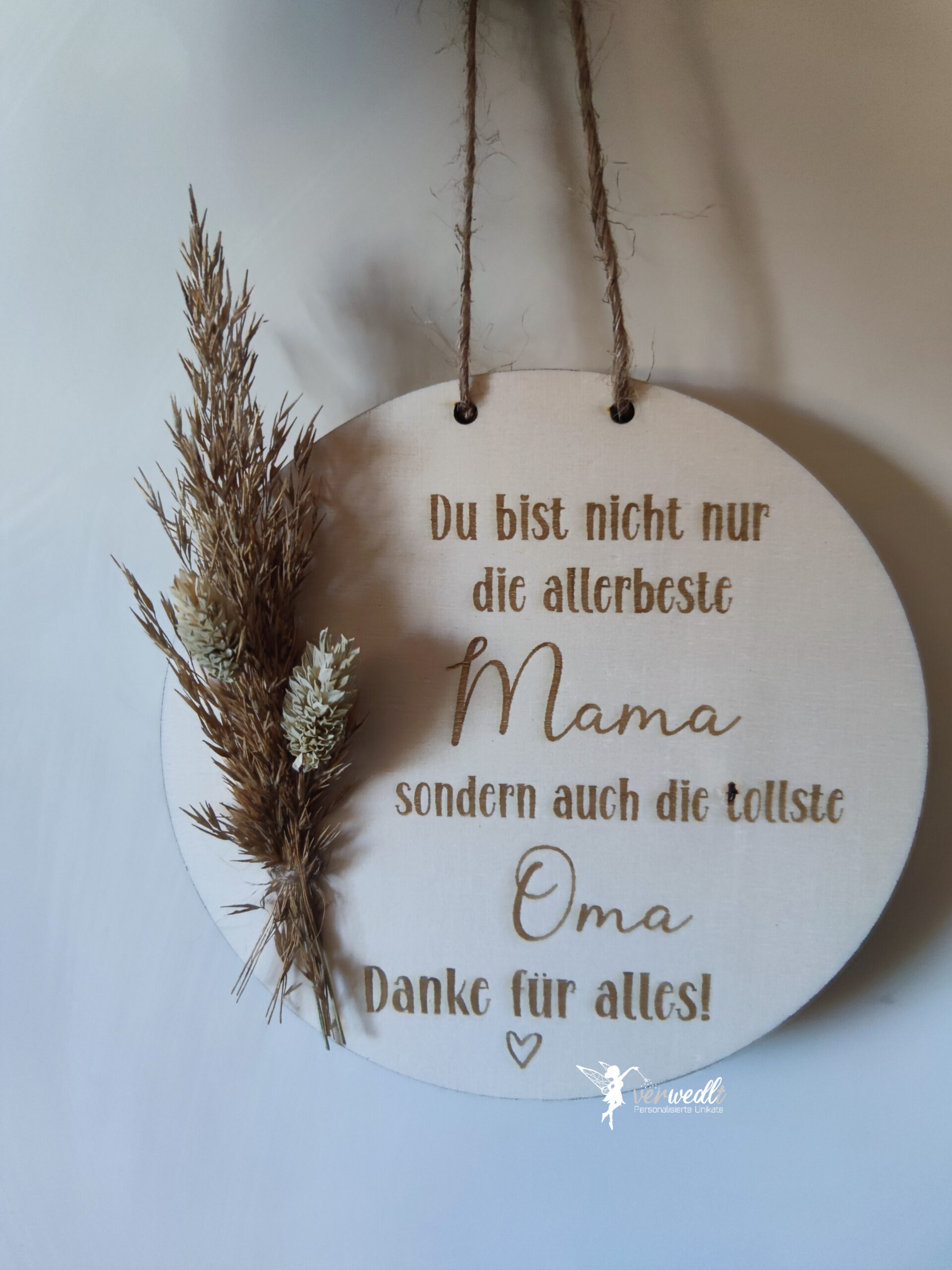 Ein ganz besonderes Geschenk für die ganz besonderen Frauen in deinem Leben! Ob im Wohnzimmer, der Küche oder im Garten – das Schild passt sich jedem Ambiente an und schenkt überall Freude. Mache Mama und Oma eine besondere Freude und zeige ihnen, wie wichtig sie für dich sind. Ideal als Geburtstagsgeschenk, zum Muttertag oder einfach so, um „Danke“ zu sagen!